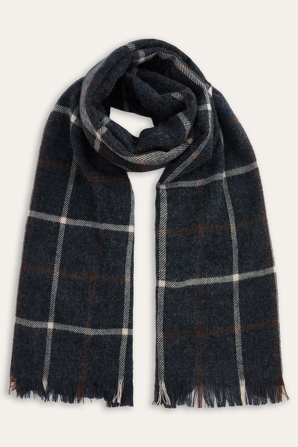 ÇİZGİLİ YÜN KARIŞIMLI ATKI MAVİ
