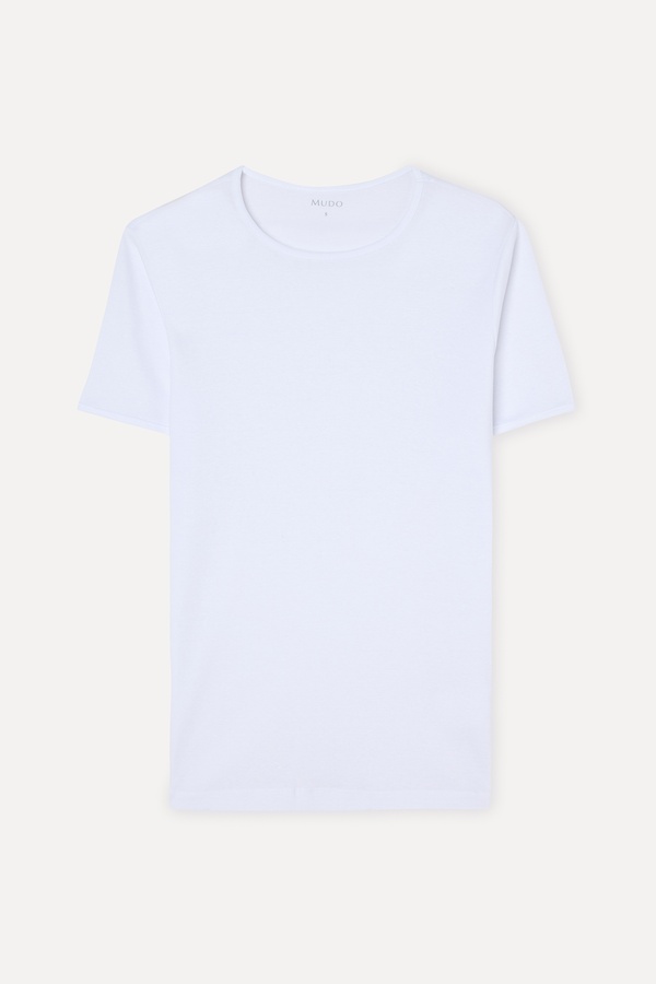 Erkek Beyaz Bisiklet Yaka T-Shirt
