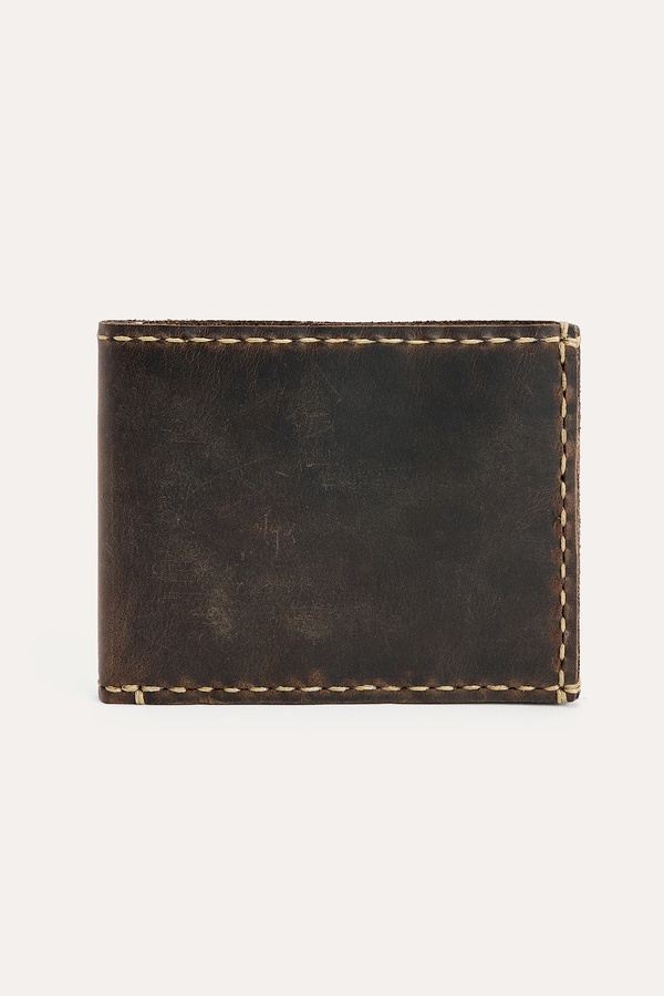 HAKİKİ DERİ DİKİŞ DETAYLI CÜZDAN KAHVERENGİ
