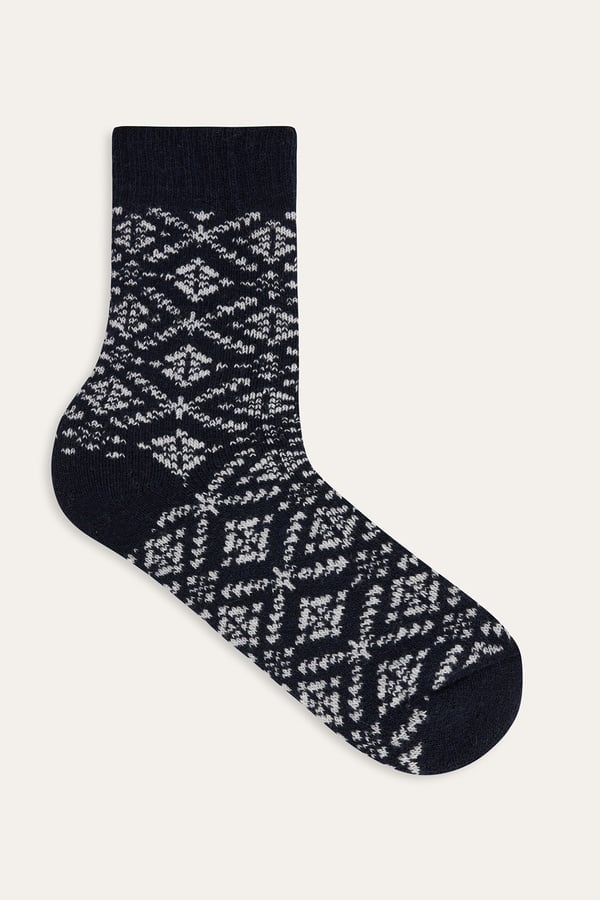 DESENLİ YÜN KARIŞIMLI SOKET ÇORAP LACİVERT