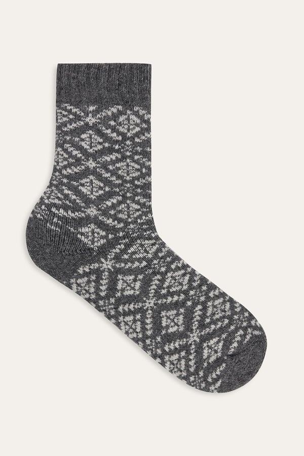 DESENLİ YÜN KARIŞIMLI SOKET ÇORAP GRİ