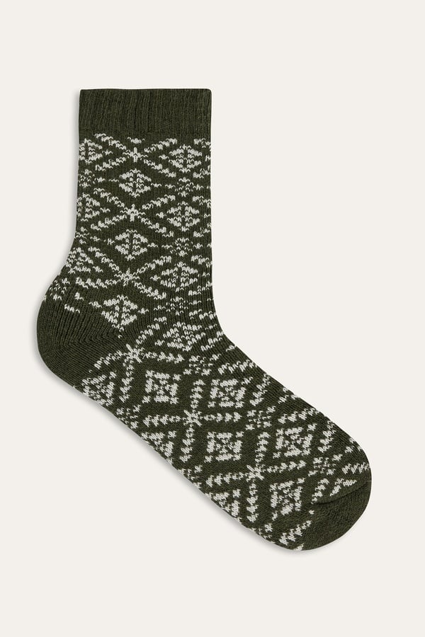 DESENLİ YÜN KARIŞIMLI SOKET ÇORAP HAKİ