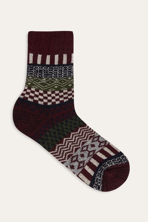 DESENLİ YÜN KARIŞIMLI SOKET ÇORAP BORDO