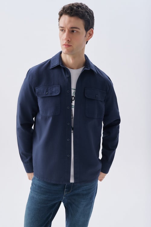 Erkek Mavi Regular Fit Uzun Kollu Gömlek LACİVERT