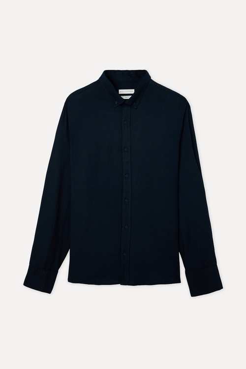 SLIM FIT UZUN KOLLU KETEN GÖMLEK LACİVERT