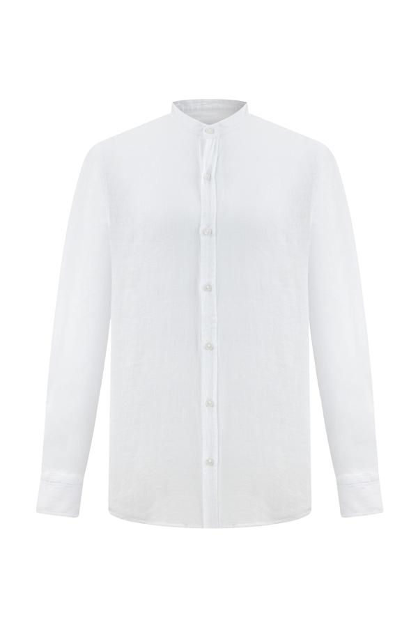 HAKİM YAKA REGULAR FIT KETEN GÖMLEK BEYAZ