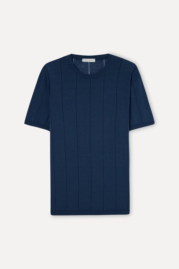 Erkek İndigo Bisiklet Yaka Kısa Kollu Triko Kazak