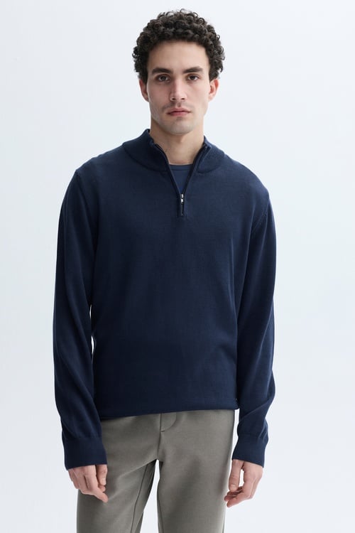 FERMUARLI DİK YAKA TRİKO KAZAK LACİVERT