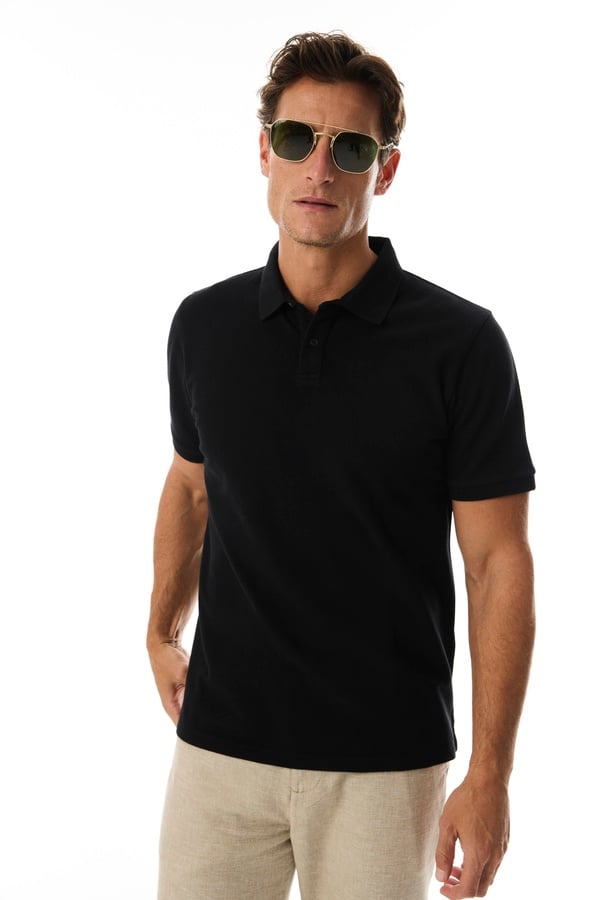 POLO YAKA KISA KOLLU T-SHIRT SİYAH