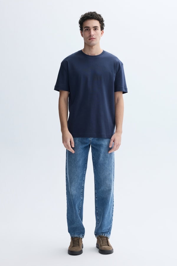 COMFORT FIT BİSİKLET YAKA T-SHIRT LACİVERT