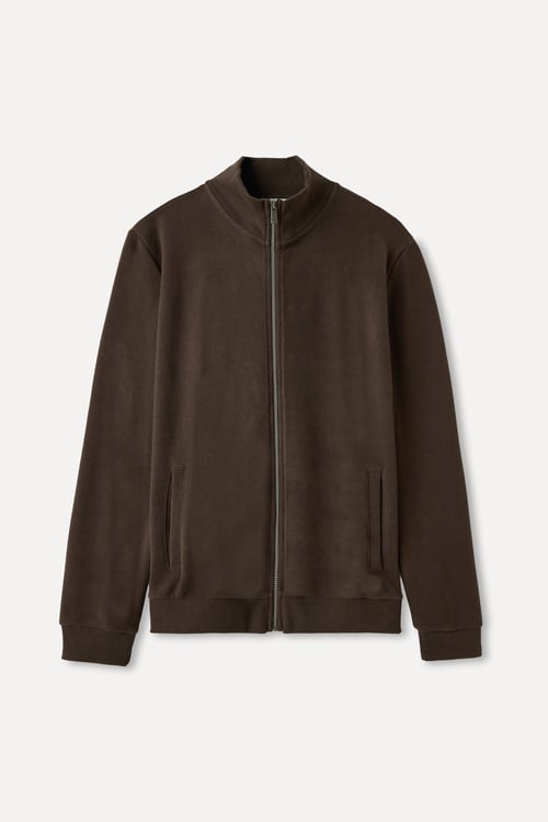 DİK YAKA FERMUARLI SWEATSHIRT KAHVERENGİ