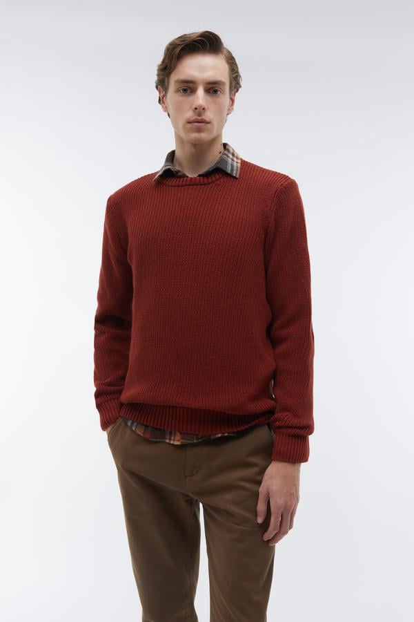 ÖRGÜLÜ BİSİKLET YAKA KAZAK KİREMİT