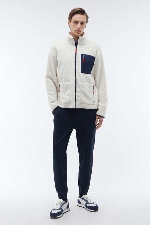 FERMUARLI RENK DETAYLI POLAR CEKET EKRU