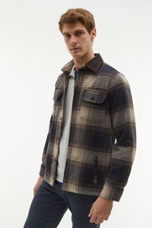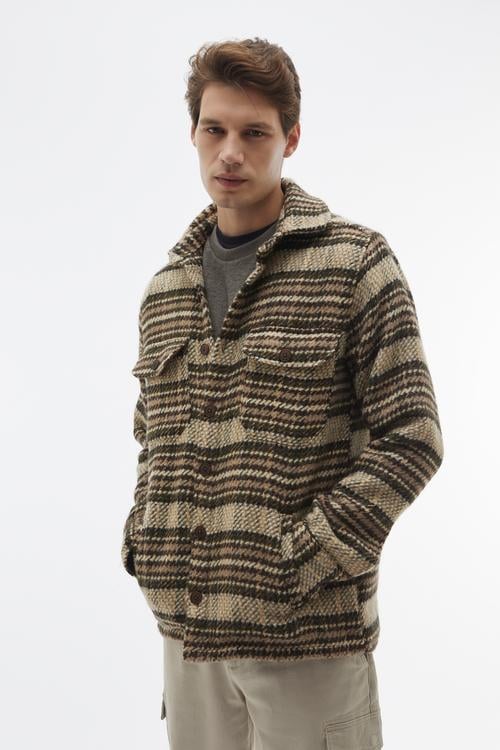 EKOSELİ YÜN KARIŞIMLI GÖMLEK CEKET KAHVERENGİ