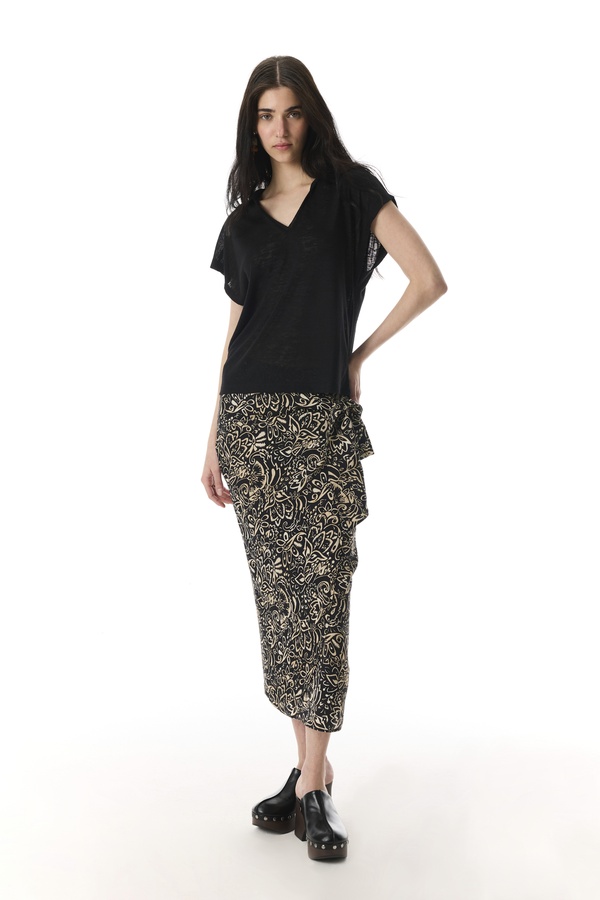 ETNİK BASKILI BAĞLAMA DETAYLI MİDİ ETEK
