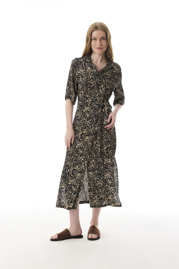 ETNİK BASKILI BAĞLAMA DETAYLI UZUN ELBİSE