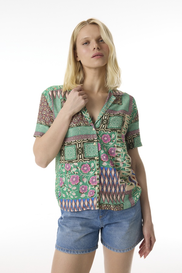 ETNİK BASKILI KISA KOLLU GÖMLEK