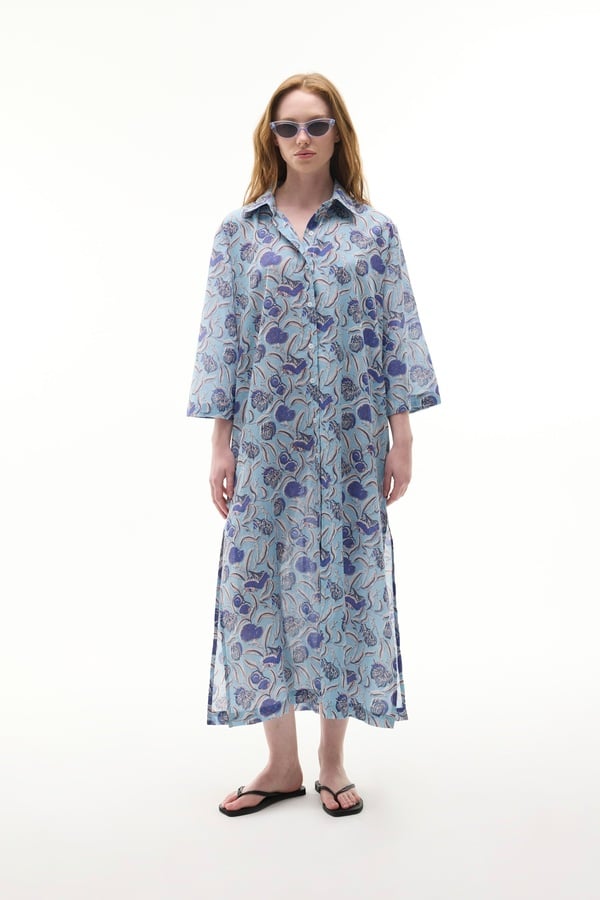 ETNİK BASKILI MİDİ GÖMLEK ELBİSE