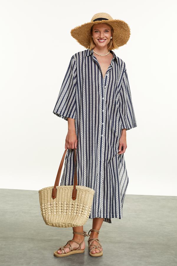 ETNİK BASKILI UZUN GÖMLEK ELBİSE