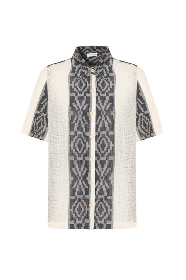 ETNİK ÇİZGİLİ KISA KOL GÖMLEK