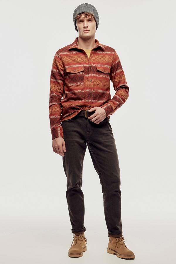 Mudo desenli gömlek modelleri ile kombinlerinde özgün detaylar. Desenleriyle etnik tınıları barındıran regular fit gömleği tişörtler ile kombinleyebilir, ahşap takılarla bohem tavrını güçlendirebilirsin.