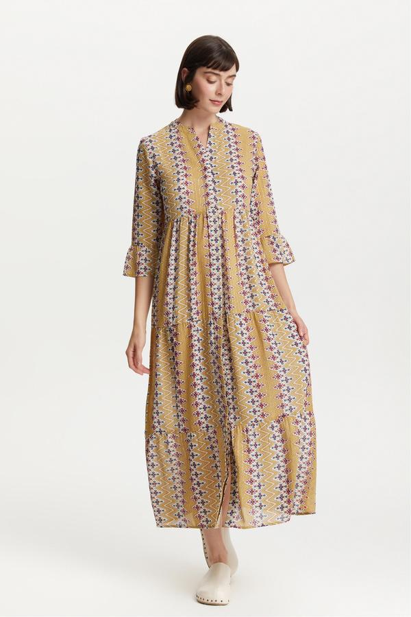 ETNİK DESENLİ UZUN ELBİSE