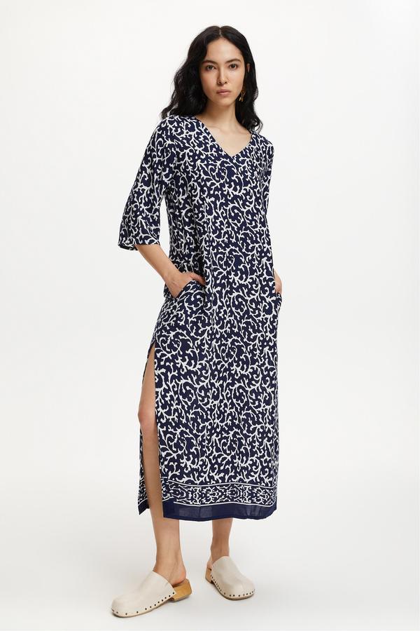 Mudo'da desenler plaj şıklığı ile yeniden yorumlanıyor. Etnik dokularıyla dikkat çeken, yanları yırtmaçlı uzun plaj elbisesi hareketlerine eşlik ederken, kullanacağın gözlükler ve hasır çantalar ile stilini daha güçlü göstermene yardımcı olacak.