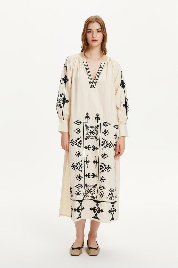 Plaj modası Mudo'da. %100 pamuklu kumaştan üretilen maxi plaj elbisesi, incelikli nakışları ile tasarımında fark yaratıyor. İki yanında bulunan yırtmaç detayları ile rahat bir kullanımı sunan plaj elbisesi ile stilini sahillere taşı.