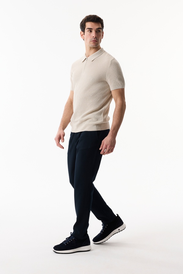 Modern detaylarla güç kazanan fermuarlı polo yaka kısa kollu kazak, şıklığı konforla bir araya getiriyor. Hafif dokulu, nefes alabilen kumaşı sayesinde yaz akşamlarında stilinize eşlik eden kazak, ön fermuar detayı ile kullanıcıya ferah bir giyim deneyimi kazandırıyor. Kısa kollu kesimi ile sportif bir duruş sergilerken, polo yaka ile klasik görünümünü korumaya devam ediyor. Her kombine uyum sağlayacak polo yaka kazak ile smart casual görünümünüzü tamamlayabilirsiniz.
