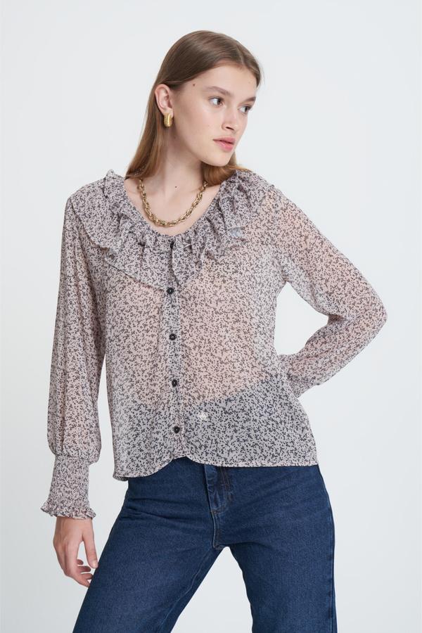 Mudo ile şık parçaları kombinlerine taşı. Yakası fırfrılı, manşetleri gipe detaylı şık tasarıma sahip uzun kollu transparan bluz, cigarette pantolon, havuç kesim pantolonlar ile kombinlenebilir. Spor ayakkabılarla klasik tarzına modern bir yorum katabilir, aksesuarlarla şıklık dozunu arttırabilirsin.
