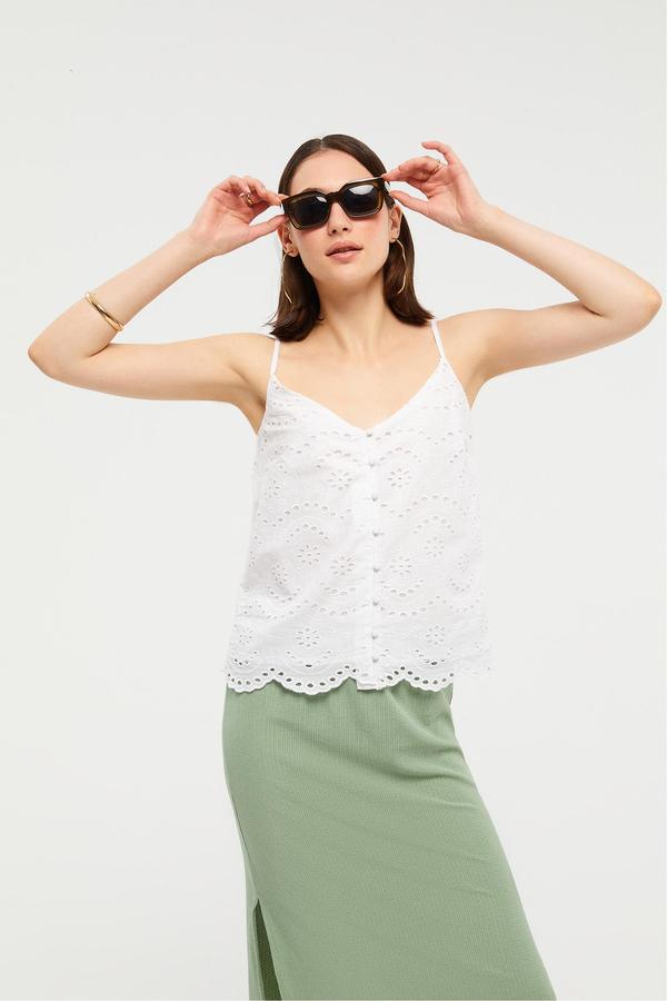 FİSTO İŞLEMELİ ASKILI BLUZ