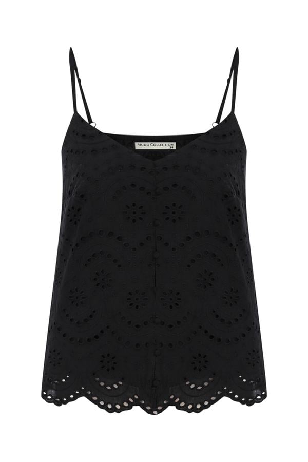 FİSTO İŞLEMELİ ASKILI BLUZ