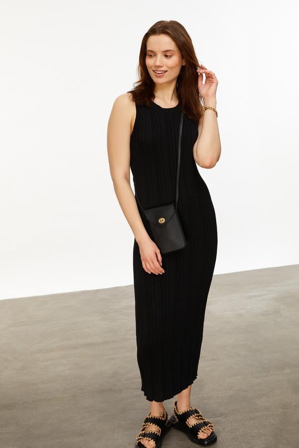 FİTİLLİ KOLSUZ MİDİ TRİKO ELBİSE