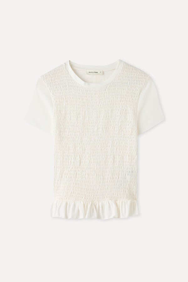 FITTED FIRFIRLI DİK YAKA KISA KOLLU BLUZ