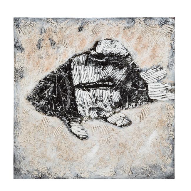 Fossil Fish yağlıboya tablo, yaşam alanlarına modern ve sofistike bir estetik kazandırır. Soyut balık figürüyle dikkat çeken bu eser, kalın fırça darbeleriyle oluşturulan dokulu yüzeyi sayesinde mekana özgün bir karakter ve derinlik katar. Siyah, beyaz ve bej tonlarının kontrast kullanımı, eserin sanatsal etkisini öne çıkarır.
