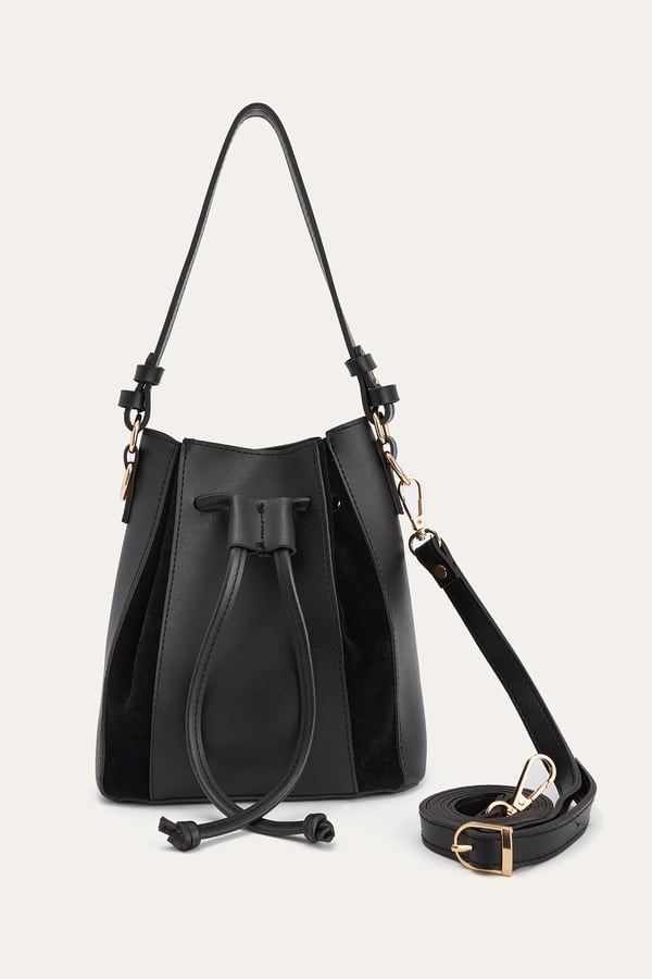 BÜZGÜLÜ ASKILI EL ÇANTASI SİYAH