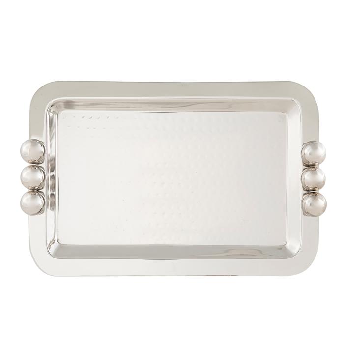 Yaşam alanlarınıza sofistike bir dokunuş katacak dekoratif tepsi, dokulu yüzeyi ve şık tasarımıyla öne çıkıyor. Kaliteli paslanmaz çelikten üretilen dekoratif tepsinin iki farklı ölçü seçeneği bulunuyor.