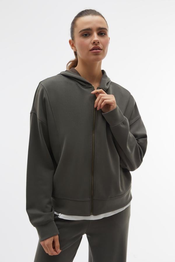 MODAL KAPÜŞONLU FERMUARLI SWEATSHIRT ANTRASİT