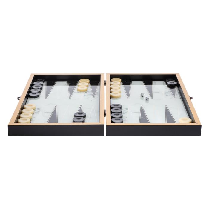 15 adet + 15 adet toplam 30 pul ve 2 adet zar bulunmaktadır.Malzeme: %50 Cam, %50 Polyester