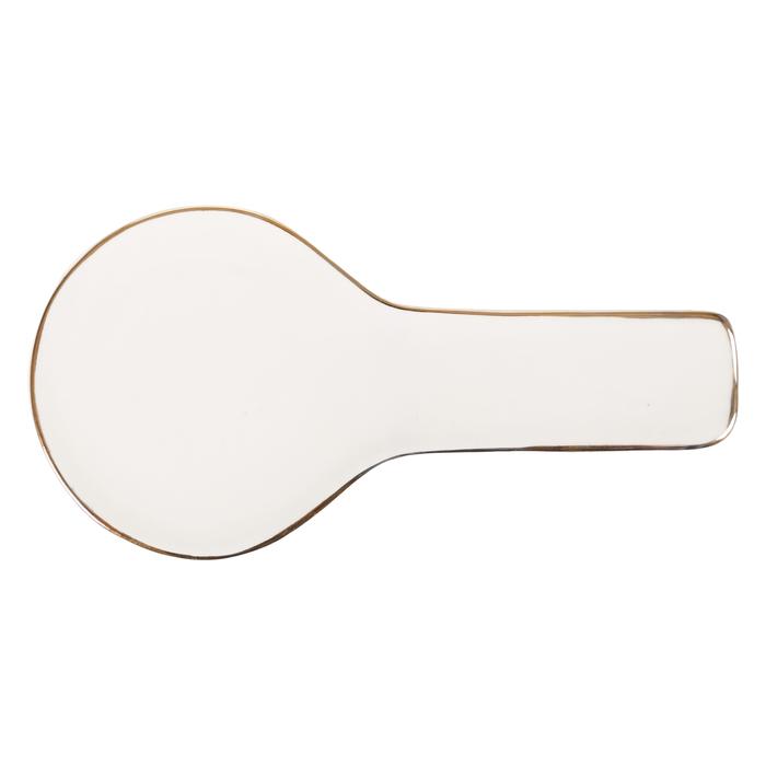 Seramik malzemeden üretilmiş, beyaz kenarları altın rengi şeritli tezgah üstü kaşıklık hem kullanışlı hem şık.