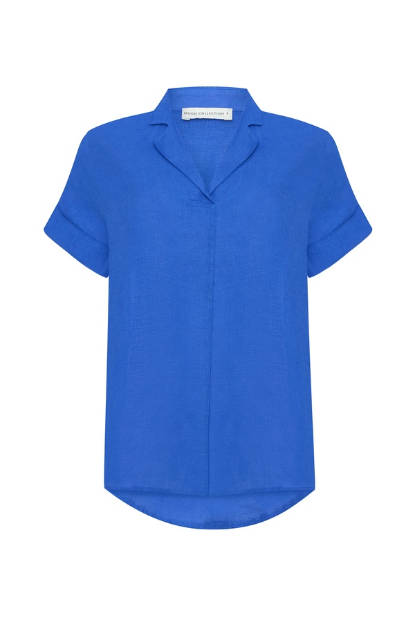 GÖMLEK YAKA KISA KOLLU KETEN BLUZ