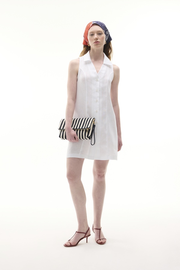 GÖMLEK YAKA KOLSUZ MİNİ KETEN ELBİSE