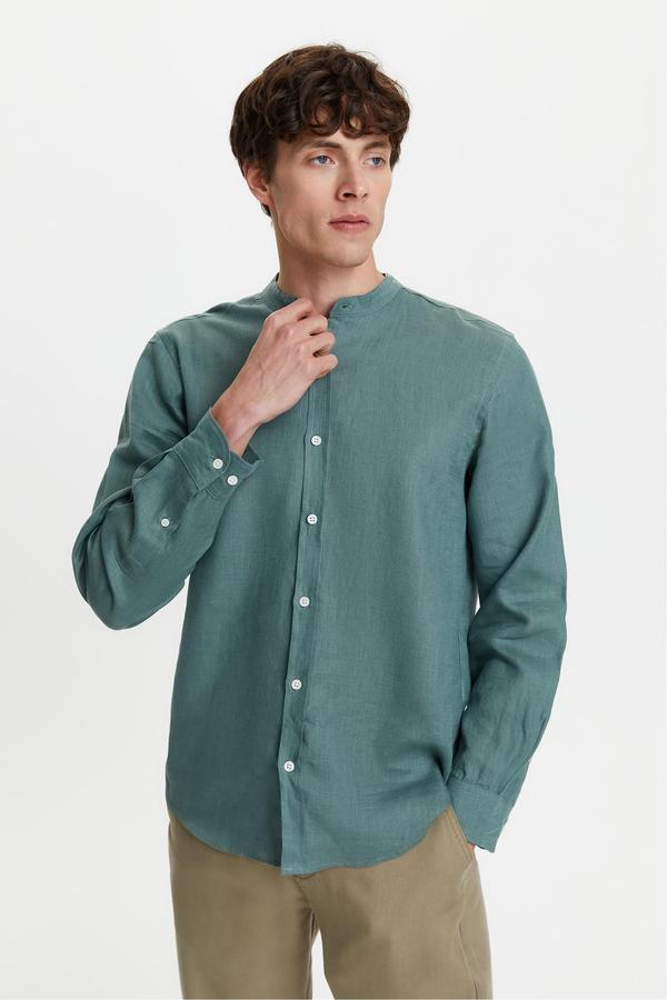 HAKİM YAKA REGULAR FIT KETEN GÖMLEK