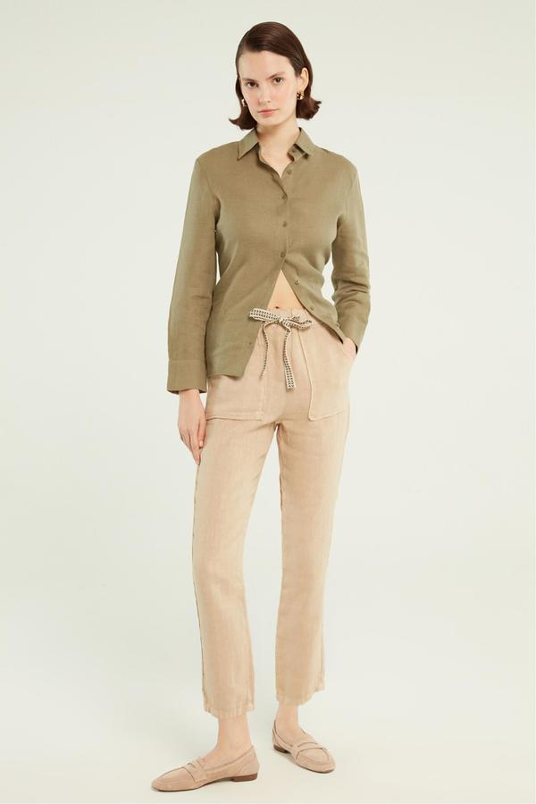 %100 keten kalitesiyle yaz modası Mudo'da. Farklı renk seçenekleriyle beğenine sunulan havuç kesim pantolon ekoseli bağlama detayı ile öne çıkıyor. Keten konforunu şıklıkla buluşturan havuç kesim pantolon, ofis ve günlük şıklığında kurtarıcın olacak.