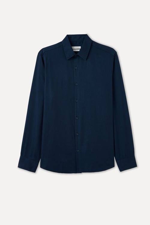 REGULAR FIT UZUN KOLLU LİYOSEL GÖMLEK LACİVERT