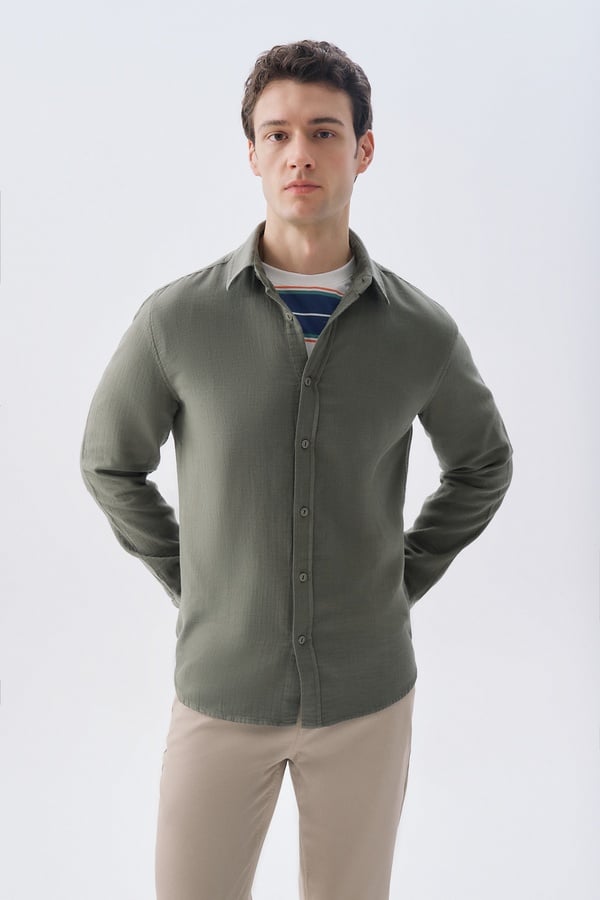 REGULAR FIT UZUN KOLLU GÖMLEK HAKİ