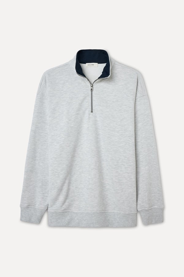 FERMUARLI DİK YAKA OVERSIZE SWEATSHIRT GRİ MELANJ