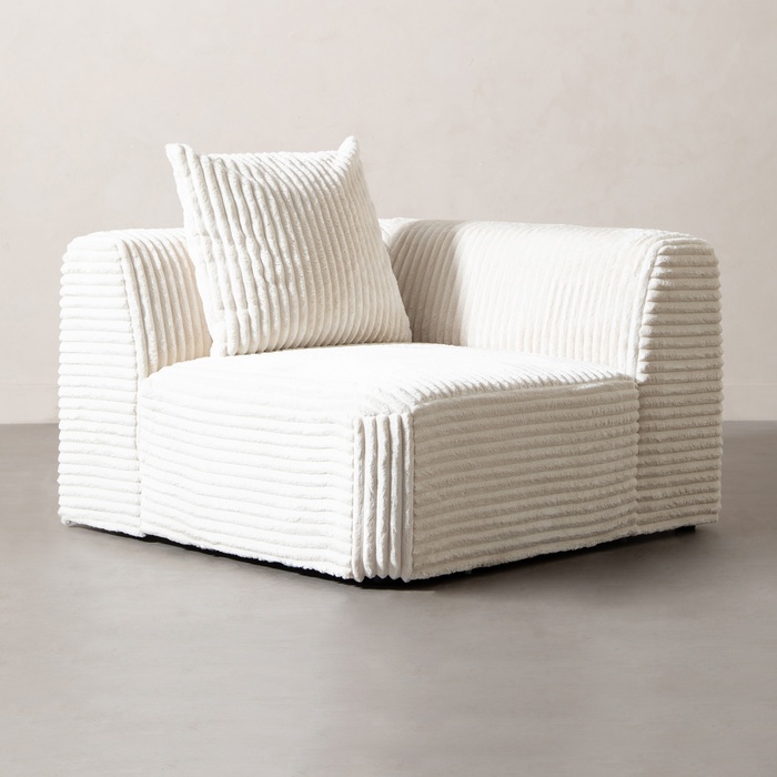 Hera köşe modül koltuk, sıradanlıktan uzak, yaratıcı ve konforlu bir deneyim sunuyor. Fitilli pelüş kumaşı ve özel yapısıyla öne çıkan model, 32 DNS ve kuş tüyü süngerle konfor deneyimini üst seviyeye taşıyor. Modüler yapısı ve farklı ölçü seçenekleriyle yaşam alanlarınıza uygun kombinasyonlar yaratabileceğiniz Hera, beyaz rengiyle yalın estetiği yaşam alanlarınıza taşıyor.