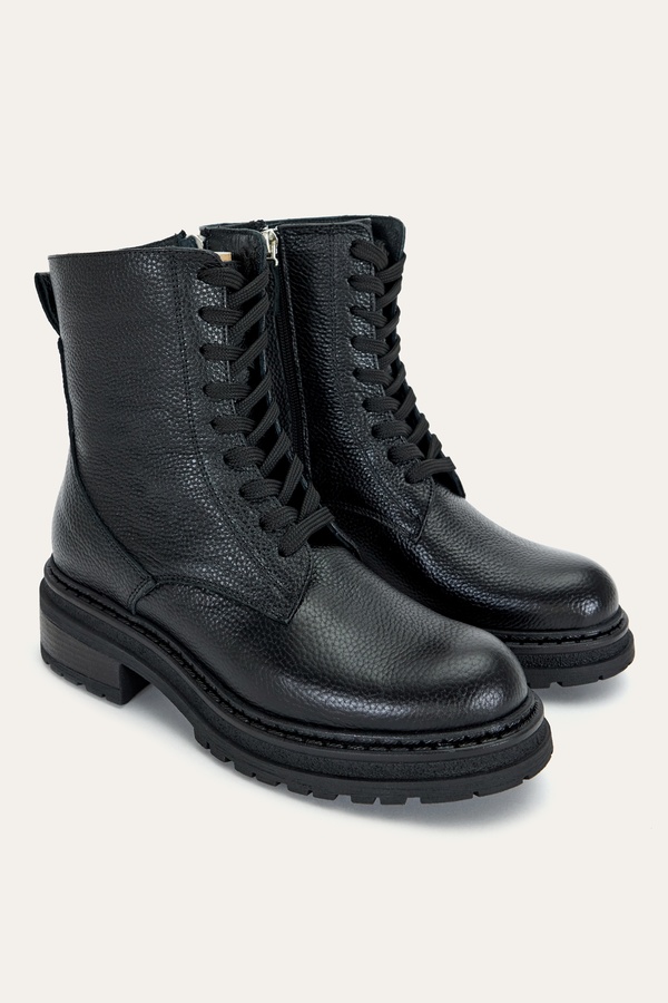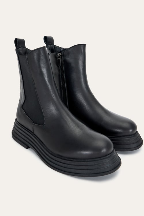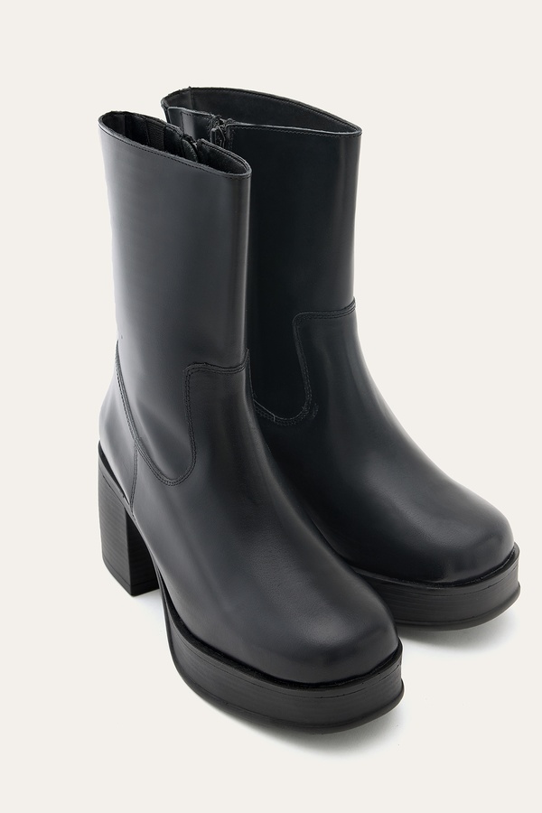 PLATFORM TOPUKLU HAKİKİ DERİ BOT SİYAH
