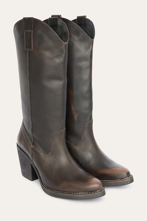 ESKİTMELİ HAKİKİ DERİ TOPUKLU ÇİZME KAHVERENGİ